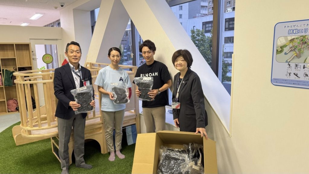 このたび、港区の「あっぴぃパーク高輪」へ大人用の靴下500足をお届けしました!